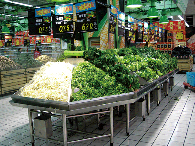 金港华掌握成熟钣金,焊接技术,可按照客户个性需求和卖场特点,自如设计生产多种水果、蔬菜类的不锈钢展示台。样式新颖,外观流畅,组合功能强,展示效果饱满。